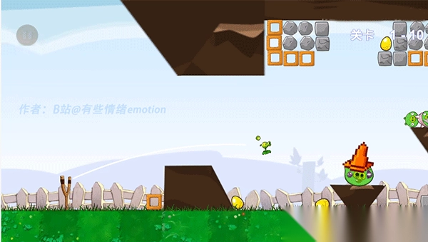 在弹射环节,首先挑选好植物角色,接着用手指拖动瞄准框,调整好发射的角度和力度,之后切断绳索把植物发射出去,借助抛物线的运动轨迹来击中猪猪。