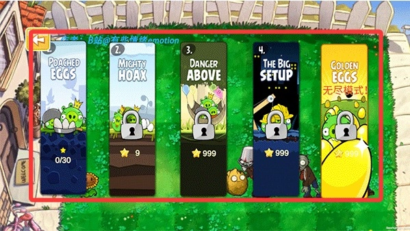 把“植物大战僵尸”的元素和经典的“愤怒的小鸟”玩法融合起来,创新打造“植物捣蛋猪”模式,使大家熟悉的植物角色变身为可弹射的小鸟。