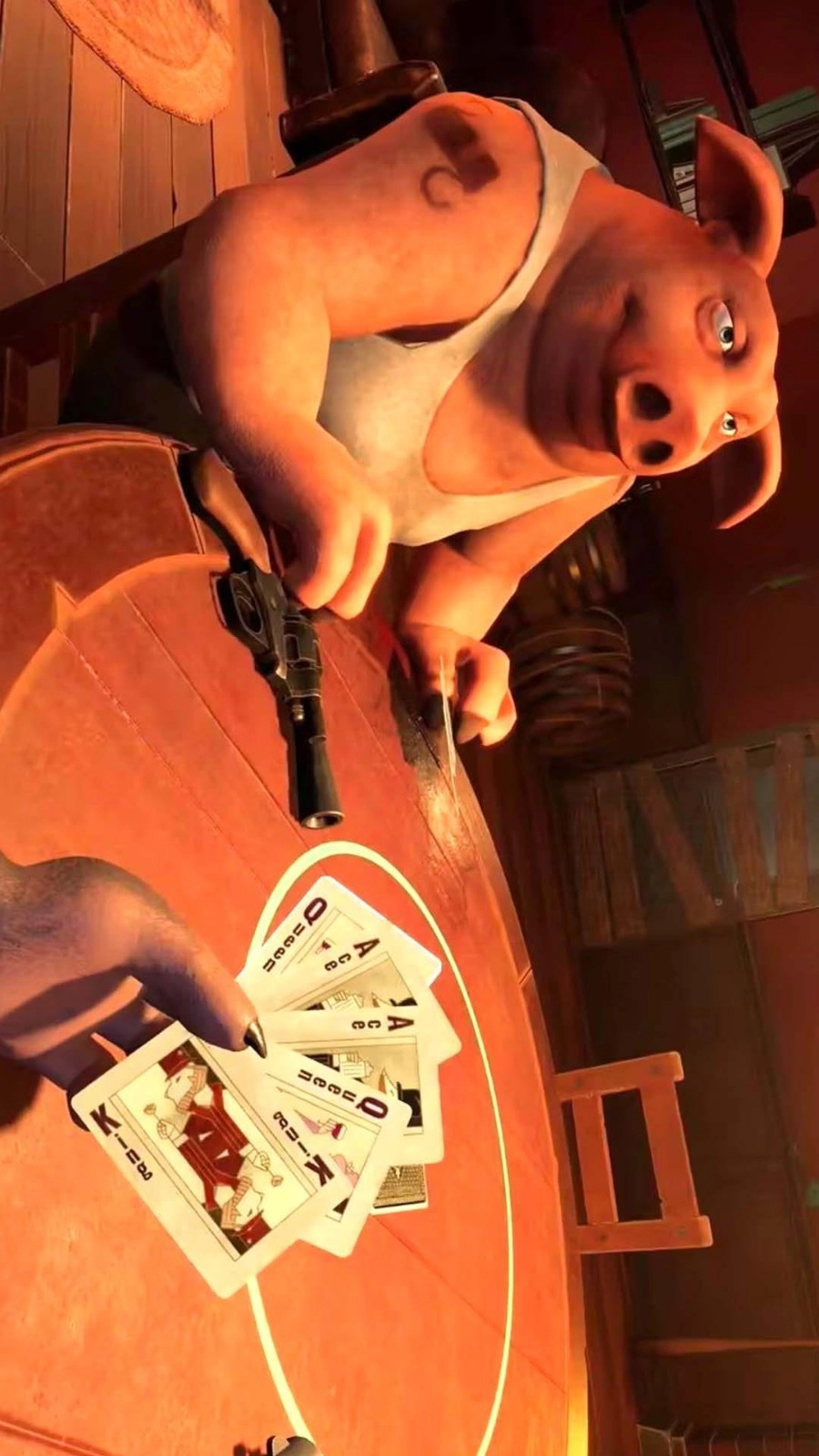 这是一把考验纯粹运气的俄罗斯轮盘手枪,每人仅有最多六次失败机会;无论成功质疑他人,还是质疑他人失败,都必须拿起手枪扣动扳机。