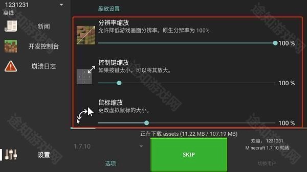 点击设置我们可以调整分辨率、鼠标大小等等,