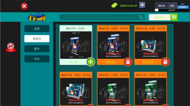 进入商店界面后,就能挑选所需的卡包进行采购,添加到购物车后完成支付就可以了。