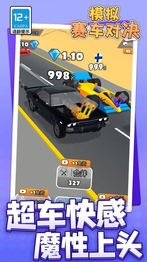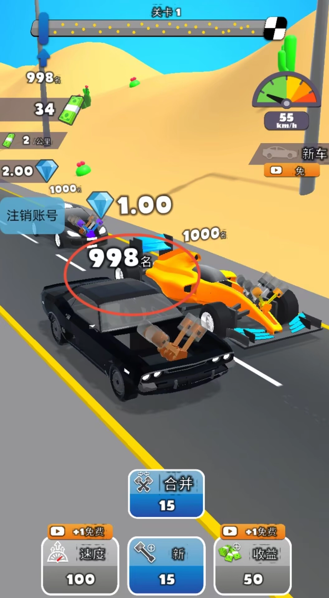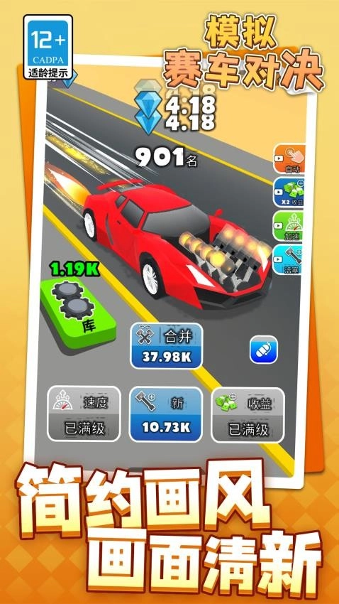 通过持续点击屏幕来操控车辆加速行驶,在超越其他赛车时能够得到钻石奖励,界面顶部会实时展示当前的排名信息。