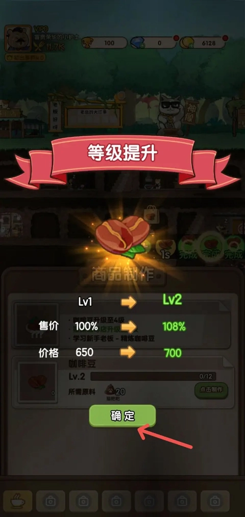 进入猫屎咖啡店的界面后,找到“提升阶级”选项并点击,即可启动升级流程。