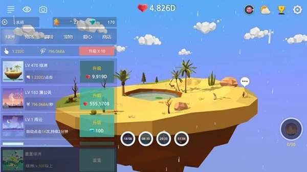 然后解锁各类技能,一步步改善沙漠绿洲小岛的生态环境。