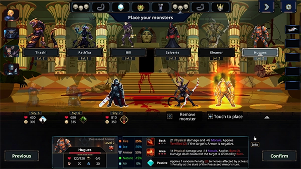 战斗的临场体验感得到了显著增强:管理类元素为玩法增添了更多层次,玩家需要对资源分配进行合理规划,通过选择升级怪物技能或是强化陷阱等方式来提升自身的战斗能力。