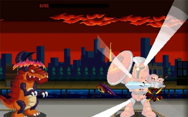 巨怪灾难(Gigapocalypse)是一款经典像素画风的2D动作闯关游戏。在游戏里,玩家将化身体型庞大的怪兽,在关卡中与其他怪兽展开战斗,通过不断运用专属技能,当对手血量降至零时即可将其成功击倒。游戏操作全程流畅,战斗过程乐趣十足,玩家还能尽情对怪兽进行升级养成。