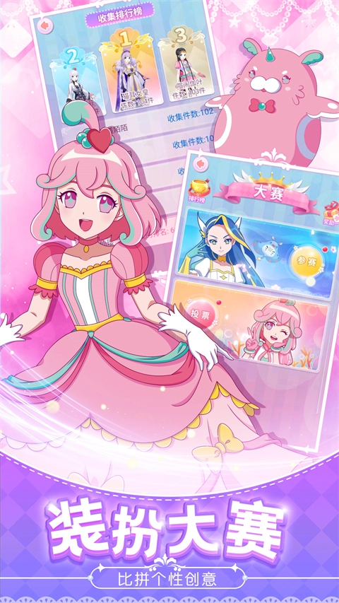 你可以借助各类可爱的卡通角色开展简易装扮,这里有数百种不同的服饰与造型可供选择。装扮完成后,你有机会获得S级评价,还能享受丰富的游戏福利和活动。玩家既能尽情体验多种多样的道具,也可以购买到漂亮的服饰。