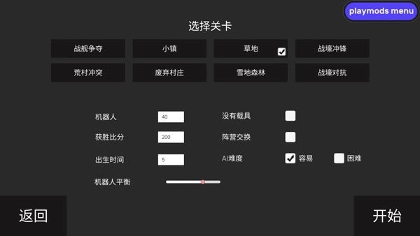 地图——用于选择战斗地图,当前可供选择的有战舰冲突、小镇、草地、战壕冲锋等。