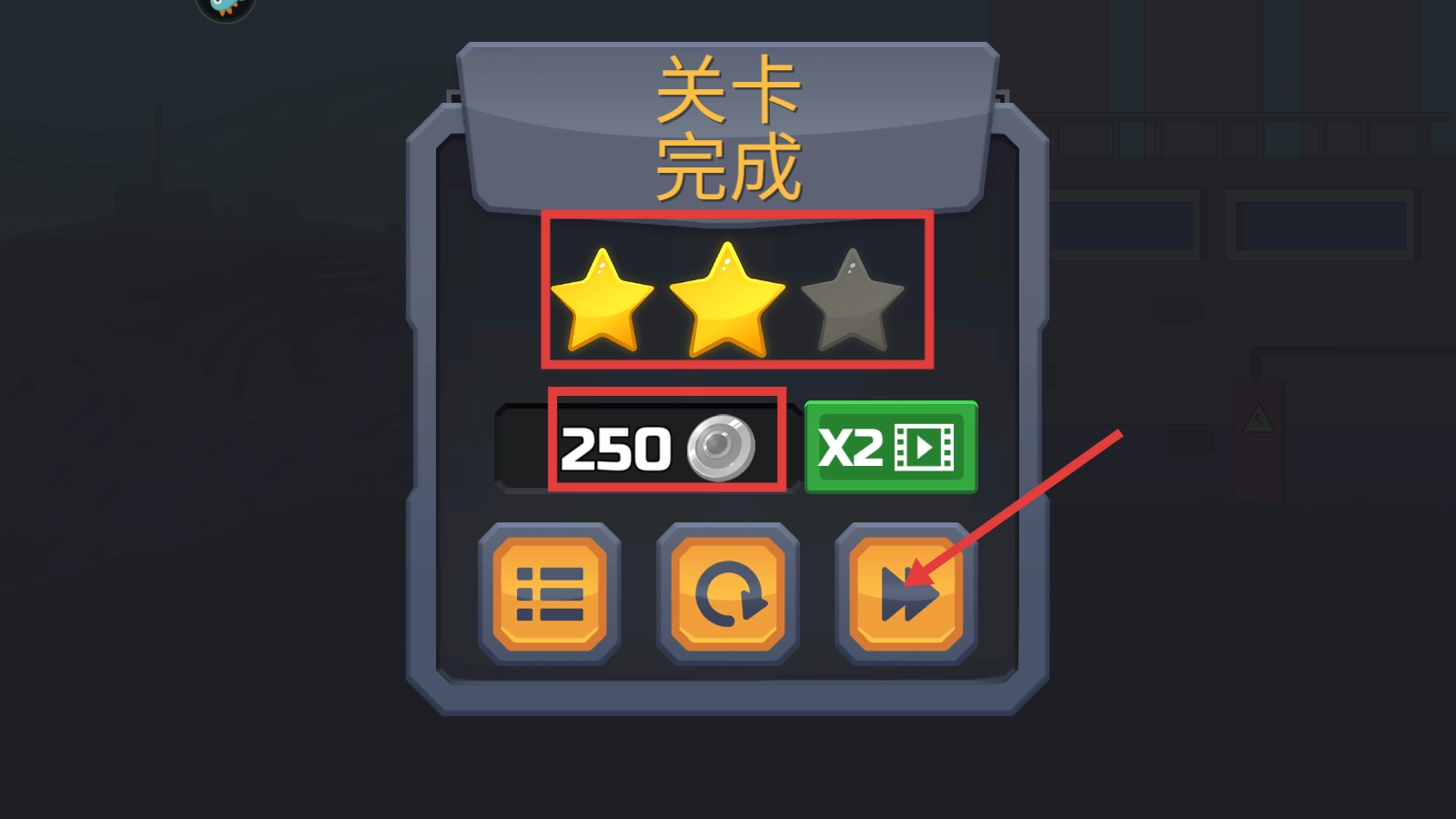 完成关卡后会得到星级评定以及【250】银币,点击箭头按钮就能进入下一关,通过积累资源可以解锁更多关卡。