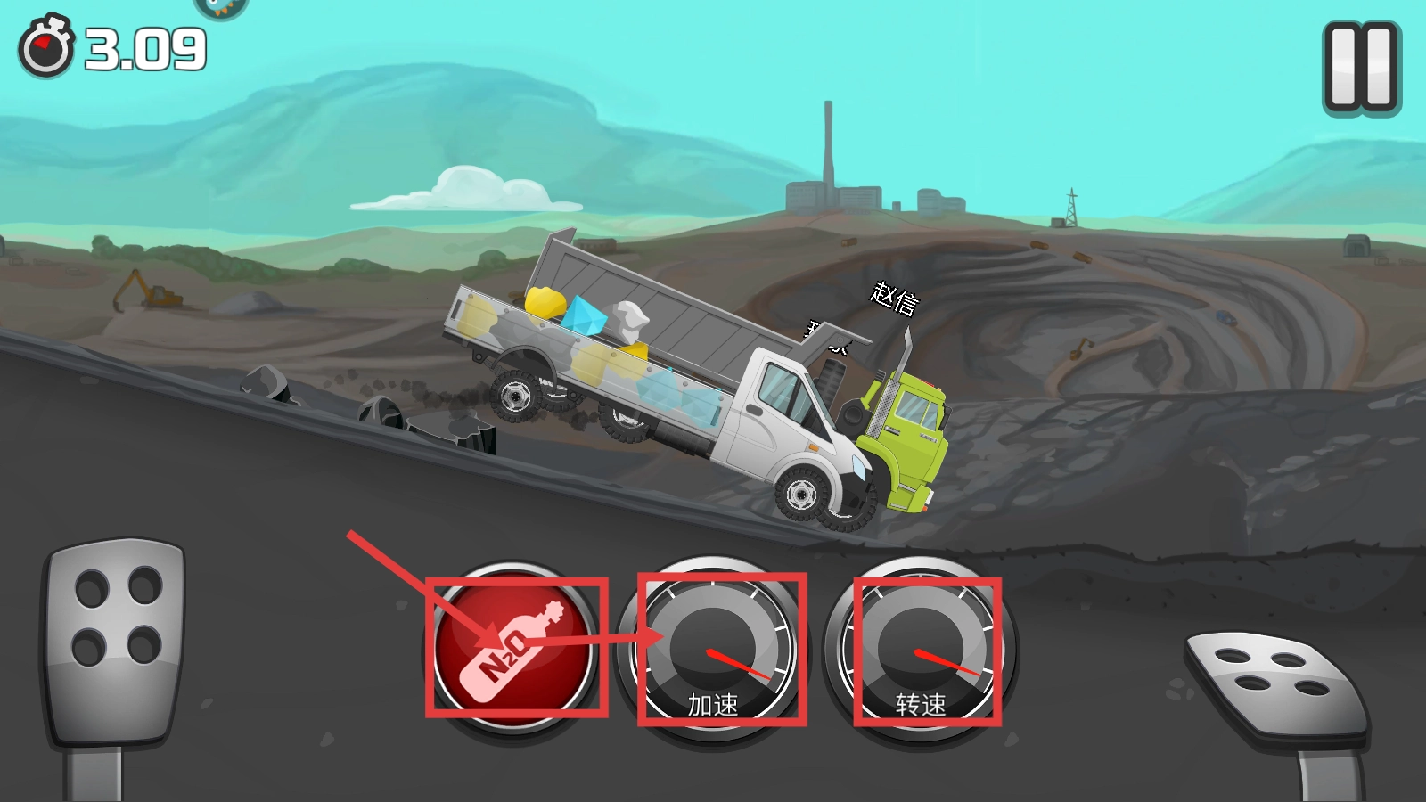 行驶时合理运用【N2O】来提升车速,与此同时留意【加速】【转速】仪表,在地形复杂的路段确保卡车维持充足动力。