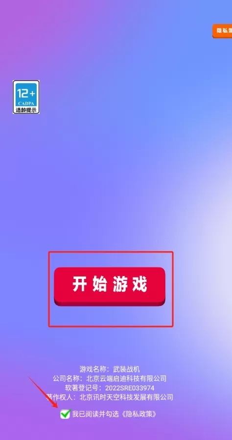 1. 打开游戏后,先点击打√,然后再点击开始游戏。