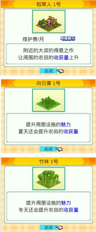 给农作物营造适宜的生长环境同样是提升产量的有效途径。除了借助各类农具外,搭建合适的环境设施也能助力作物增产。比如稻草人在提高产量方面就效果显著。另外,部分环境设施会依据季节为产量带来额外增益,像竹林有助于增加冬季的收成、向日葵则能提升夏季的收成等。需要注意的是,环境设施所带来的加成并非无限制的。