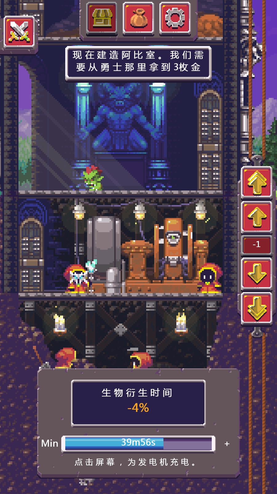 闲置启示录中文版是一款像素风格的模拟经营游戏,玩家进入游戏后需要帮助怪物们建造属于它们的据点塔楼,并培育魔物来抵御进攻的勇者团队。游戏内包含多种不同功能的房间,玩家需要收集对应的材料来为塔楼加盖新楼层,或者强化现有的建筑结构,感兴趣的朋友不要错过!