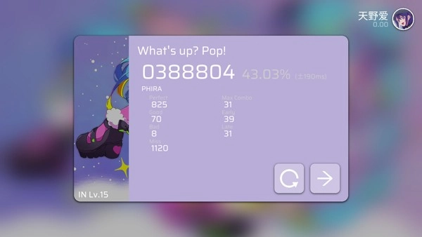 最后在歌曲结束后,连击次数越多,失误次数越少,得分就越高。