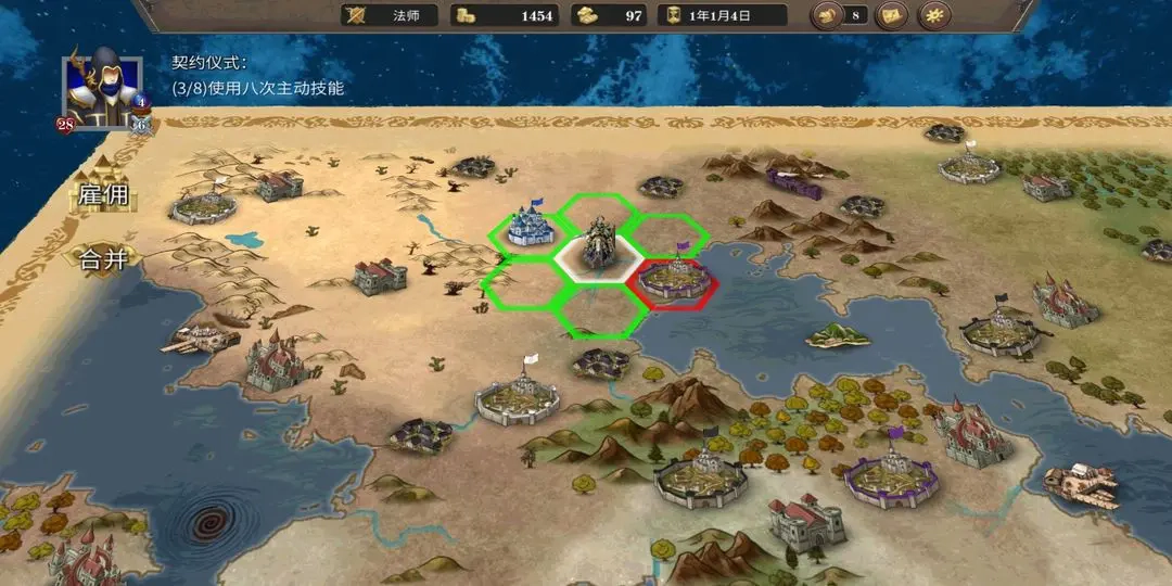 在六边形格子构成的宏大地图上展开征战,你可以自由规划行进路线。有时候直线前进并非最优策略,适当绕点远路反而能让你的军队得到进一步的强化。