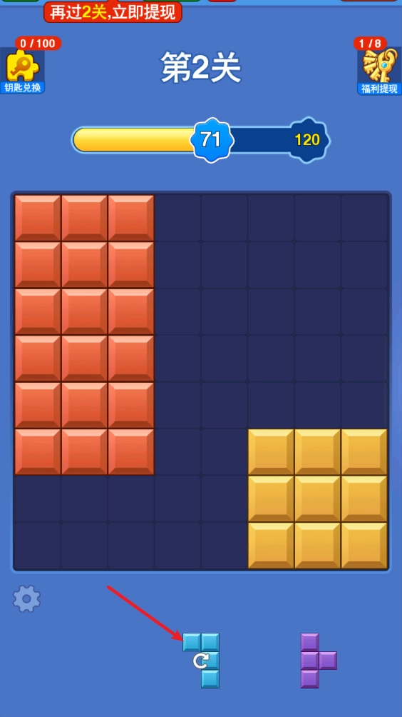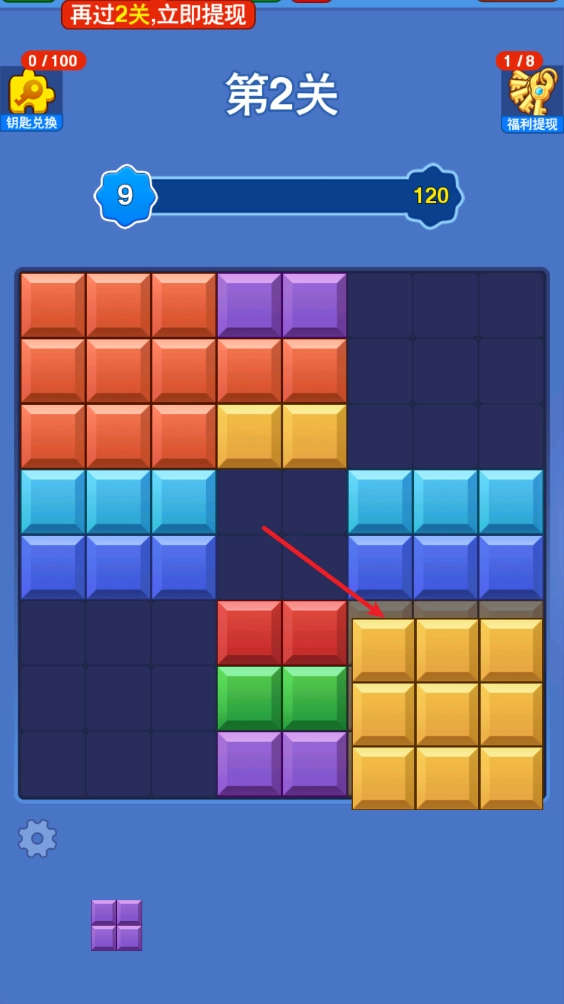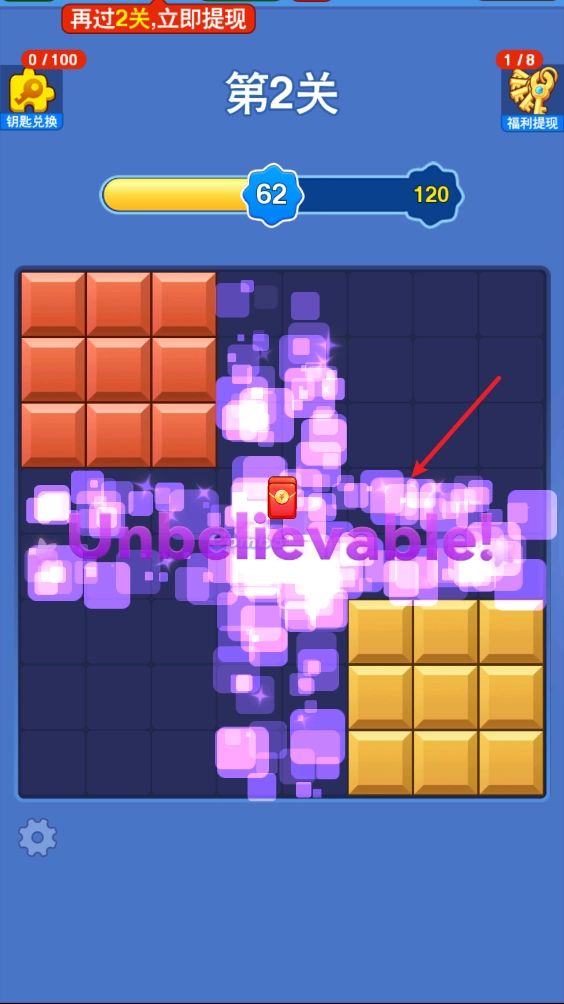 这款消除游戏玩法简单易上手,只需放置方块就能轻松消除,关卡容易通过,红包也很好获取。