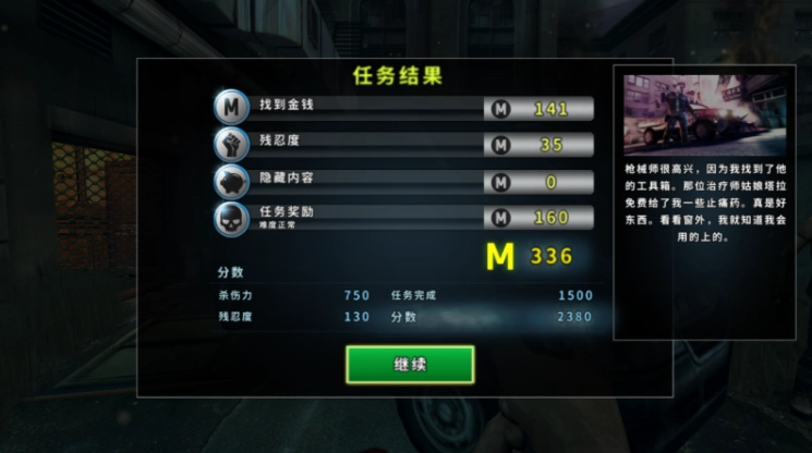 护送模式:玩家要把幸存者安全护送到指定地点,幸存者会用手枪打僵尸,不过火力比较弱。