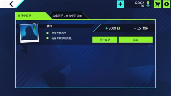接取任务后,点击商店,再点击当前车辆,就能查看所需的配件。
