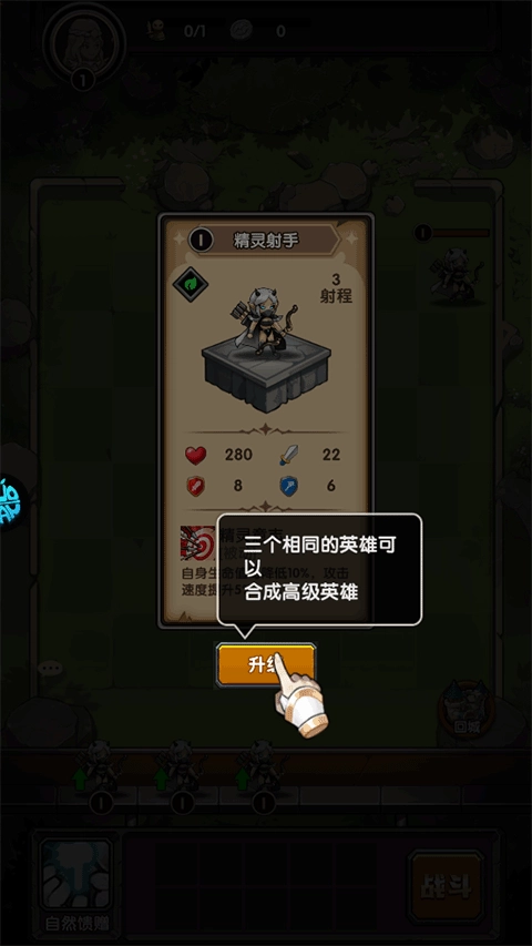 把相同的兵种进行合成,就能让兵种的等级得到提升,同时增强其战斗能力。