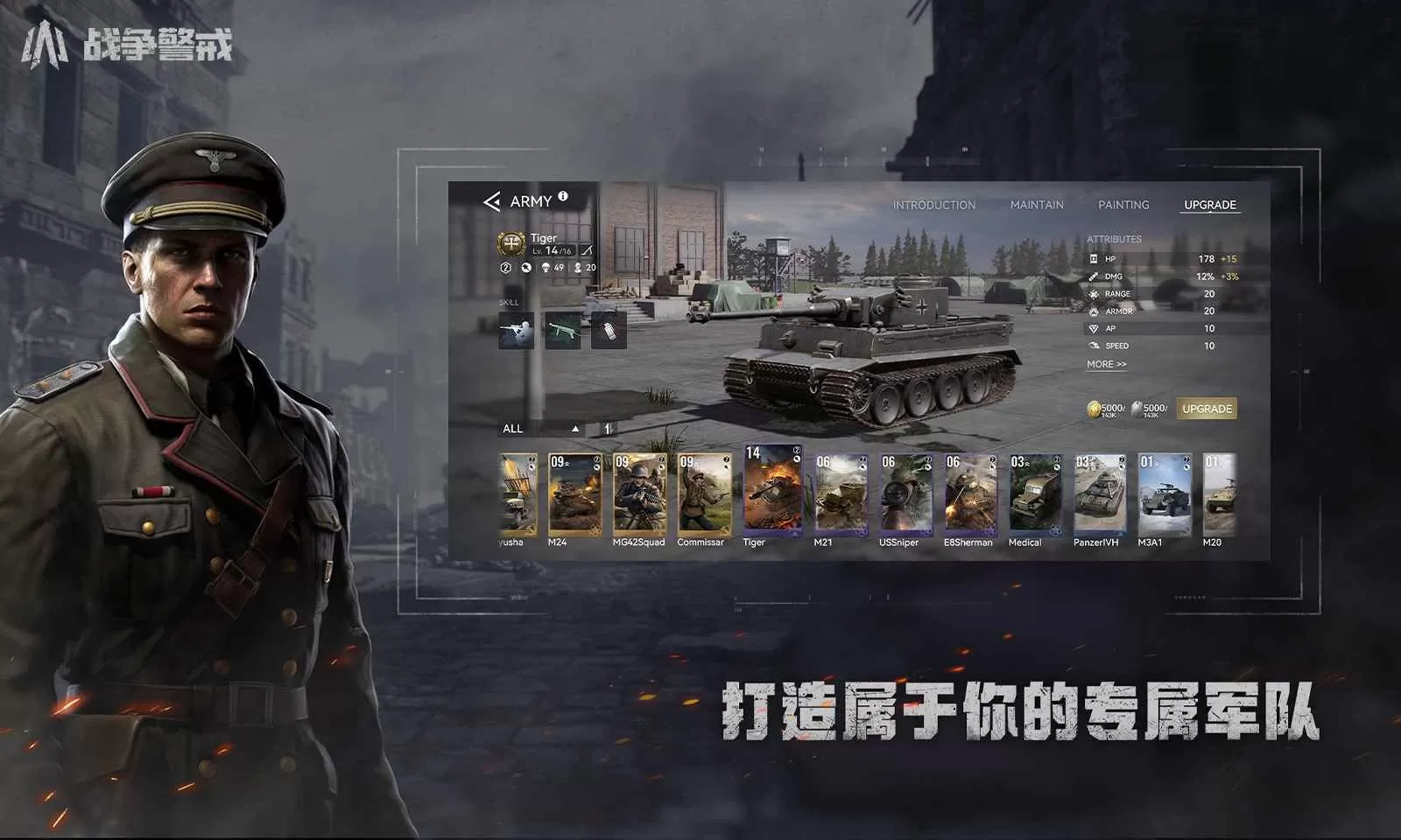 《战争警戒》是一款能让你体验二战风情的即时战略(RTS)游戏。在游戏里,你将化身为伟大的指挥官,开启一场扣人心弦的历史经典战役较量。在这里,你可以操控坦克、火炮、机枪手等多种类型角色,组建自己的联盟,与不同角色展开合作互动,投身4v4的激烈对战,征服敌人。游戏中精致的二战角色建模搭配多样的战场阵容,带来令人惊叹的作战体验。每一步都采用即时策略战斗方式,这将决定你后续的命运走向。你可以部署各类部队发动突击,征召士兵参与战斗,安排武器小队架设武器等等,全方位提升作战能力。快来感受这场激烈的对抗吧!