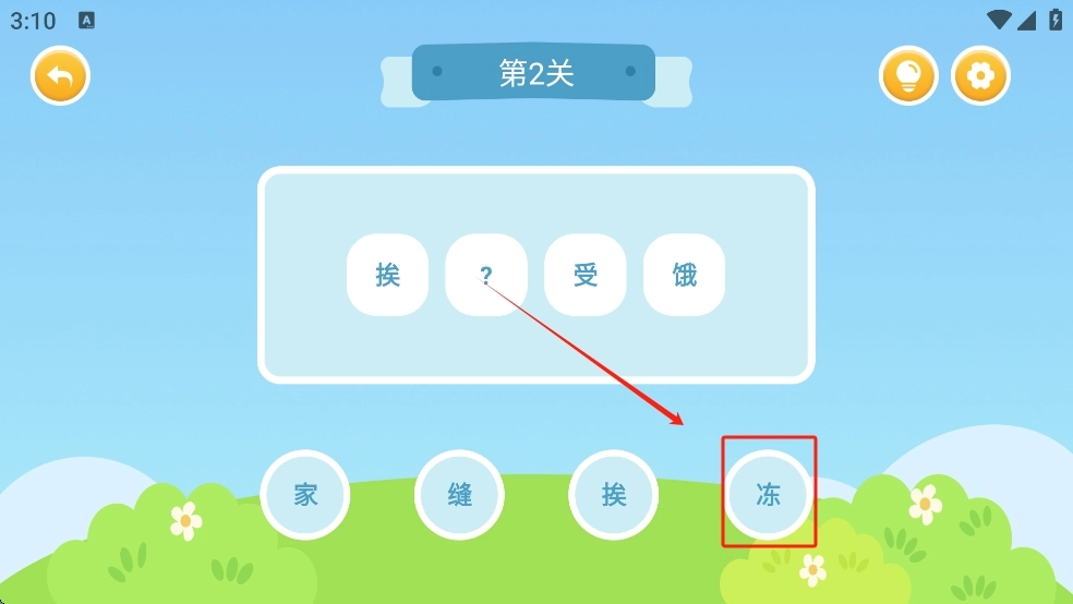 点击选择正确的字填入空格。