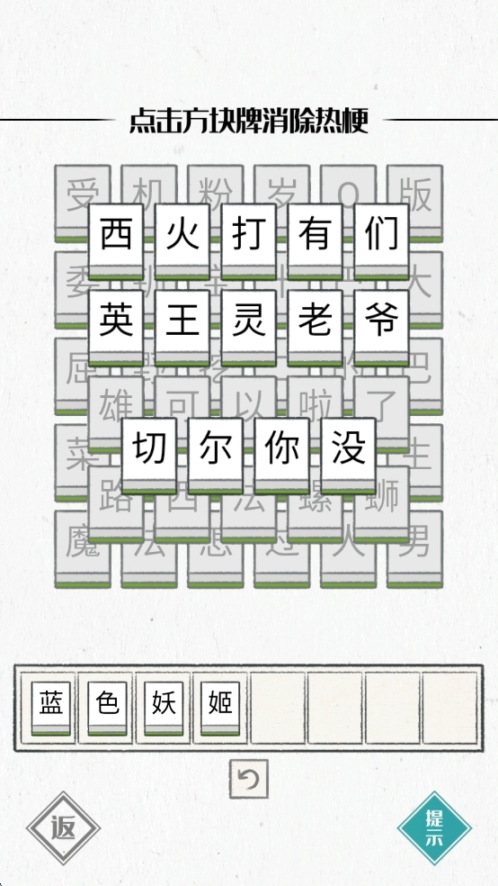 热梗猜谜玩法:借助移除特定的文字搭配,推测出暗藏的网络热梗,实现寓教于乐的效果。