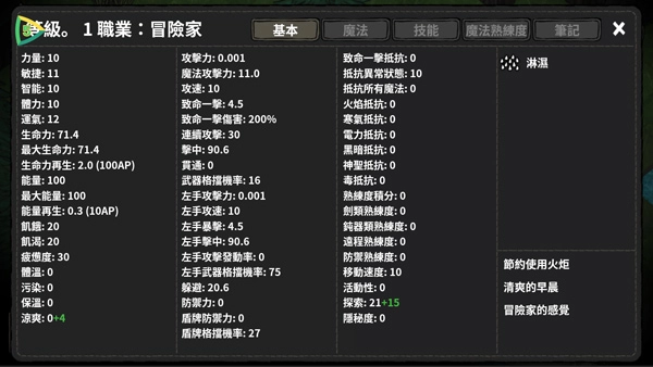 点击左上角属性按钮可查看自己的角色信息;
