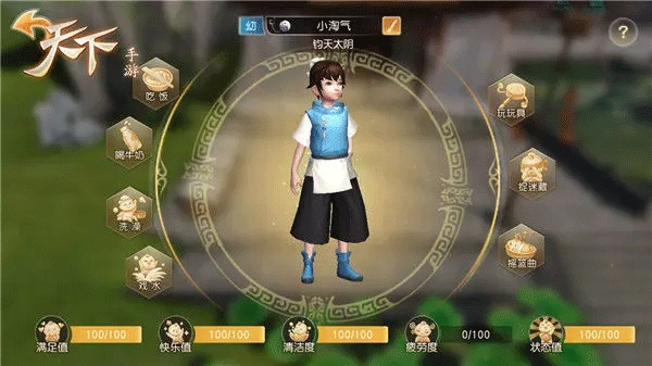 孩子的生长发育包含婴儿期、幼儿期与童年期这几个阶段。在婴儿阶段,父母可以借助满足值、洁净值和快乐值的培养方式,来提升孩子的状态值与成长值。当成长值累积到20000时,孩子就会自动进入幼儿期。