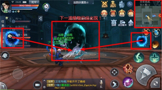 副本里会从三个传送点(上、左、右方向)刷新出怪物,它们会缓缓朝着中间的圆圈移动,而我们的任务就是在这些怪物进入正中间的圆圈之前将其全部击杀。