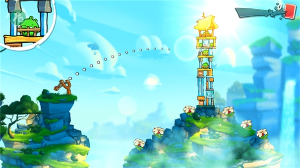 一直拖动小鸟能够调整发射方向,左上角还能看到小鸟大致掉落位置的细节。