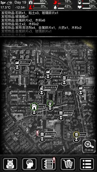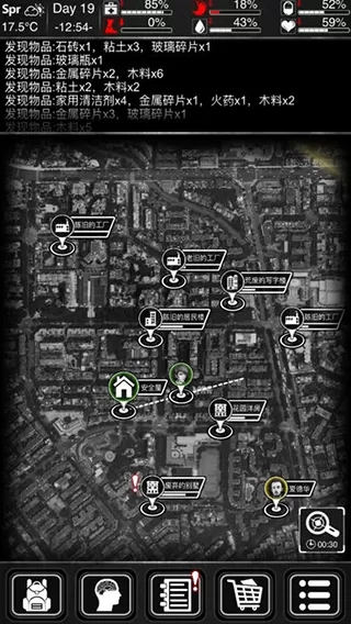 3、第一天刷资源点时,必定能获取食物的地点有:食品店、医院、加油站,其中首推医院。工厂、五金店、服装店、武器店这些地方不要去,因为没有食物。而其他资源点的食物相对较少。