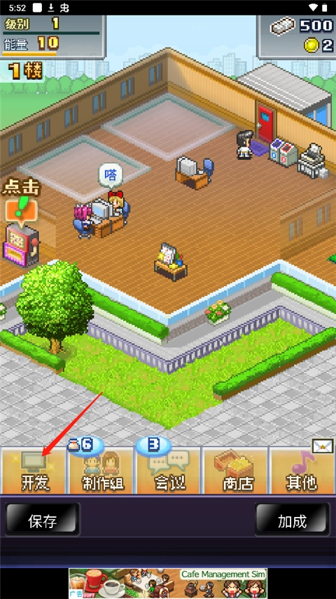 对话结束后,玩家要着手规划游戏开发事宜,我们点击“开发”按钮。