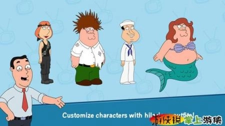在游戏里,玩家也能解锁不少趣味服装来打扮自己的角色,像化身美人鱼的彼得、穿着比基尼的Quagmire、兰博模样的洛伊丝之类的。