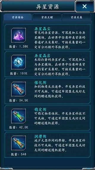 异星材料是科技升级的核心资源,特别是白矿需要每日开采。建议在晶尘储量达到上限时马上撤离,这样能避免浪费采集时间。稳定剂和催化剂的储备一般比较充足,但润滑剂却经常短缺。这里有个高效领取的小技巧:每天中午登录系统后,优先选择等级较低的目标领取,这样效率会更高。另外,记得定期查看异星商店,偶尔会刷新出稀有物资,可别错过了。