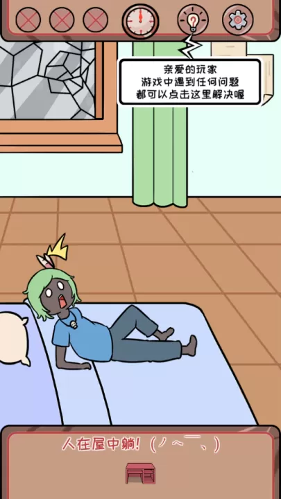 成就一:点击桌子,待运气不佳的人起身之后点击床,针对窗户使用床与桌子。