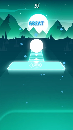 再挑选一首歌曲,即可开启挑战,只需轻点一下屏幕,就能操控小球持续向前跳跃。