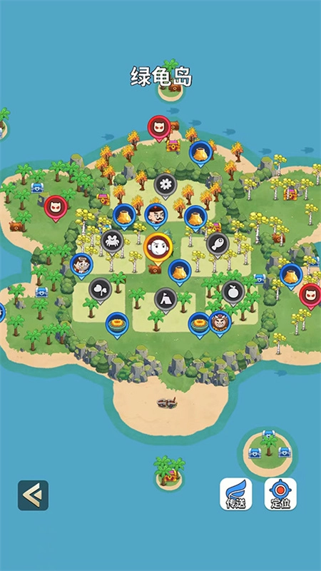 进入地图界面后,能够俯瞰绿龟岛的全貌,玩家可以根据自身需求选择【传送】功能或者【定位】功能。