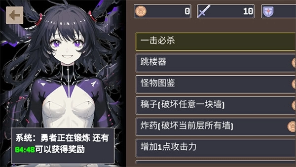 重生之我在魔塔当勇者是镜雨工作室开发的经典冒险类角色扮演游戏。玩家将以重生在魔塔世界的勇者身份,逐层探索这座神秘魔塔,挑战并击败沿途的怪物与强大BOSS,同时解锁全新的技能与装备。游戏采用复古像素画风,巧妙融合了策略性战斗机制与角色成长系统,玩家可通过角色升级和收集各类装备来稳步提升自身实力。此外,游戏中独特的金手指系统颇具特色,玩家能够消耗金币解锁属性提升、一击必杀等特殊功能,为游戏增添了更多策略维度与玩法可能性。
