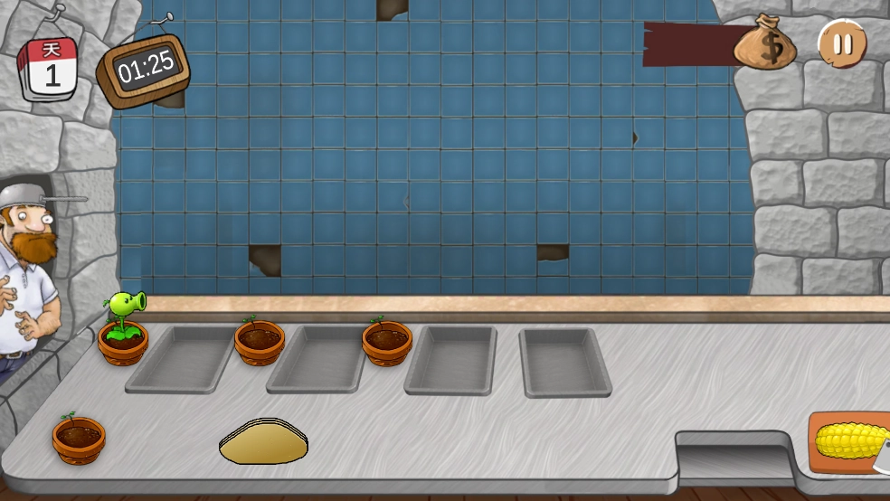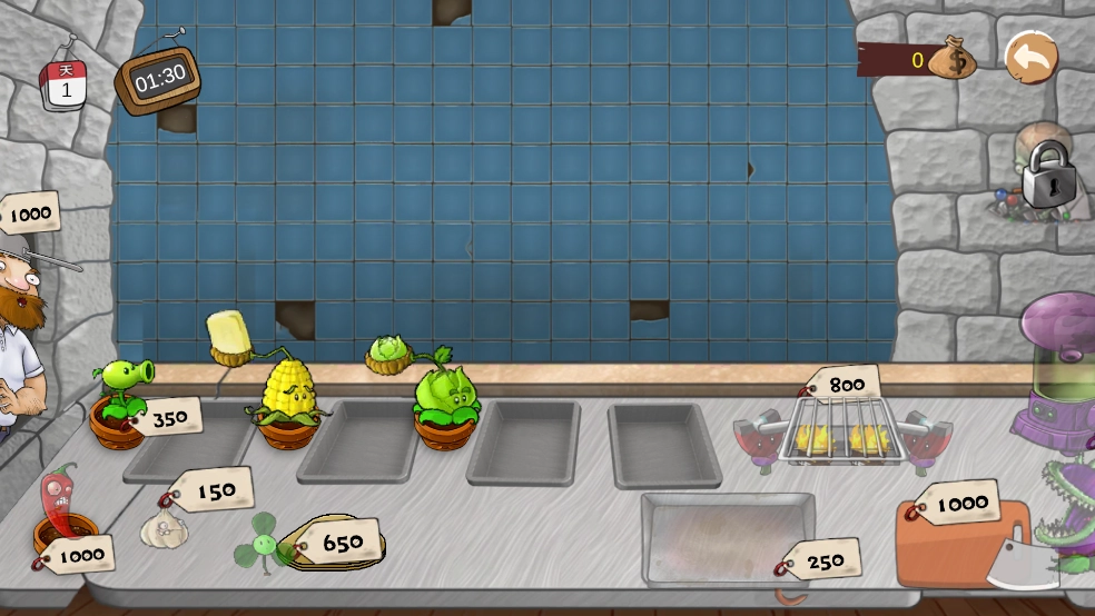 小鬼僵尸会悄悄偷走你的金币,雪人僵尸会赖账逃跑,蹦极僵尸还会来抢夺食材——相比沙威玛原版,这里有更多趣味和不同类型的僵尸!你可以用购买的植物来制定对策,挑战一下自己的最高分吧!