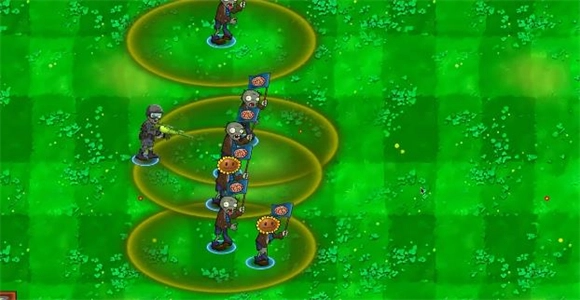 旗帜僵尸:能给范围内的友军带来40%的攻速与移速提升效果,该效果持续10秒,并且此僵尸可与植物进行结合。