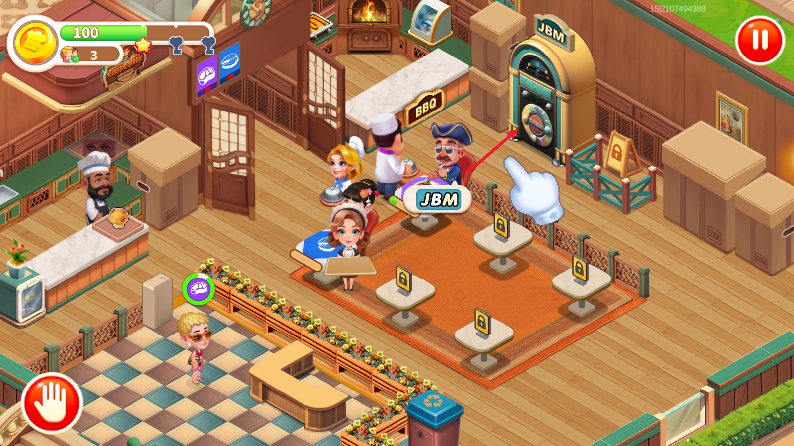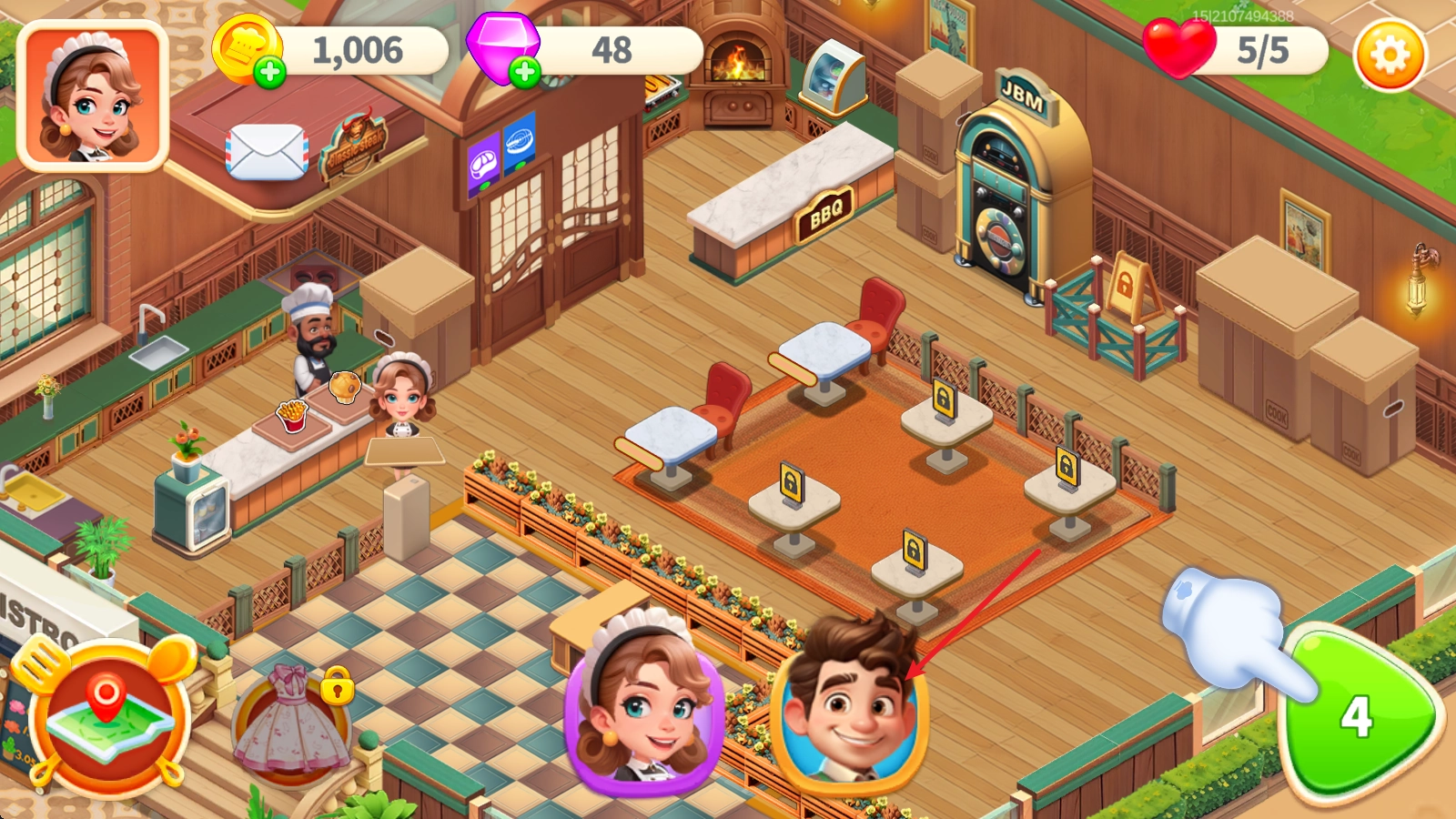 游戏的画风相当出色,既可爱又温馨,特别是那些紧扣主题的场景设计——像摆着原木桌椅、挂着暖黄小灯的烧烤小屋,或是配有水晶吊灯与丝绒沙发的法式餐厅,这些场景简直美得出乎意料!玩法主打休闲放松,而且上手特别简单!