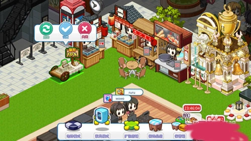 在自家布置好路边摊后,去好友家逛逛,瞧瞧有没有空着的摊位,好把剩下的摊位摆在好友家里。