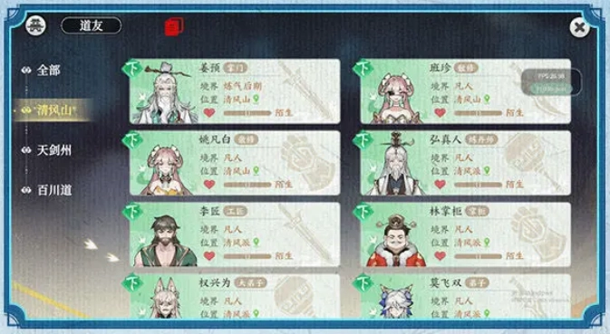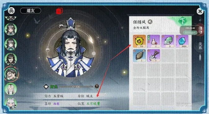 你可以打开道友界面,查看已探索地图周边的道友位置、包裹以及爱好等相关信息。