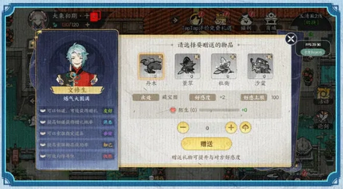 当然我们也能投其所好,把那些通过探索地图、寻宝、刷副本或是商城购买获取的好感材料送给他们,以此提升好感度。等好感度达到特定阶段后,向他们索取自身所需修炼资源的机会也会更大。
