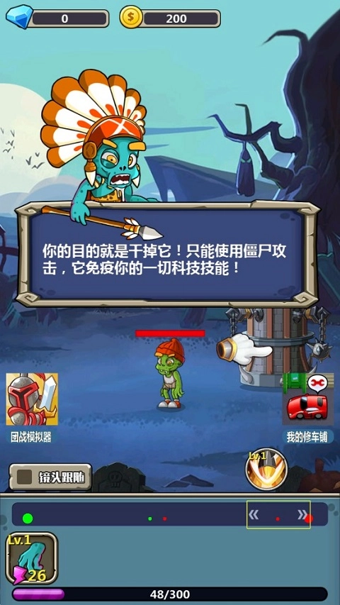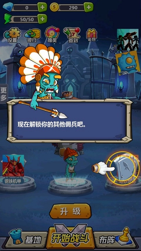 解锁更多内容:完成关卡挑战,即可解锁更多不同地图、模式以及拥有不同属性的僵尸战士,让游戏内容更加丰富。