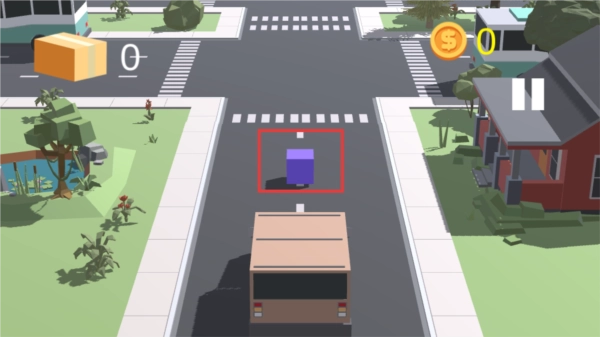操控货车,将道路上的紫色快递包裹完成配送。