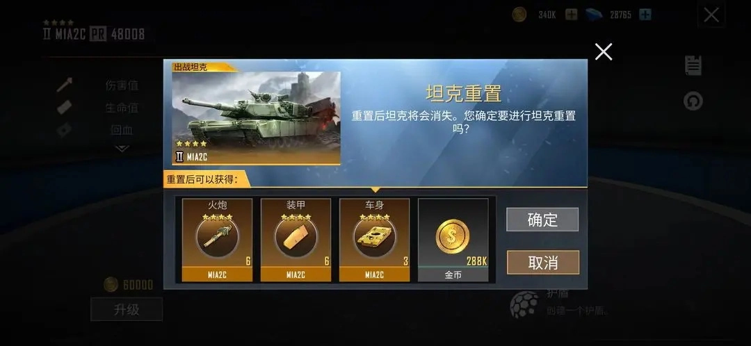 另外还可以使用【坦克重置】功能,重置操作会使坦克消失,但不会影响其解锁状态,玩家将能取回该坦克的全部部件,同时还能获得此前消耗金币的80%返还。