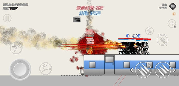 玩家屏幕左侧设有左右移动控制键,连续点击两次还能触发扑越动作以躲避子弹;不过射击方向是固定的,无法自由切换——点击左侧就朝左射击,点击右侧则朝右射击,因此需要不断移动才能快速击中敌人。左侧同时还配备了加速和下蹲按键,可根据实际战况灵活使用。屏幕右侧的换弹与换枪功能则需要合理搭配,避免在激烈战斗中因换弹换枪陷入被动。