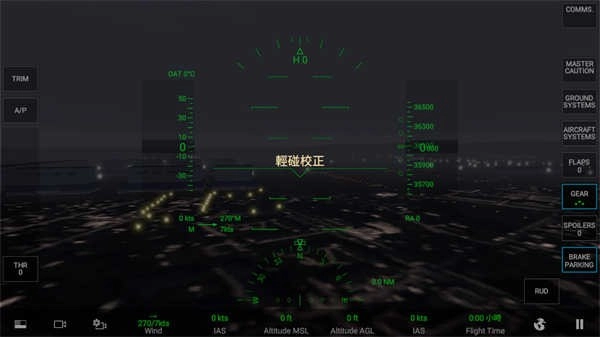1, 打开rfs模拟飞行游戏,点击“开始起飞”后进入正式飞行界面。首先会出现轻触校正的提示,这一步是为了确定手机处于何种角度时,对应着飞机平飞的状态。