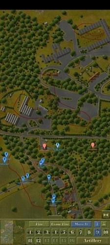 4、由图可见,这种情况非常危险。我方的余回部队被发现,但由于处于丛林复杂环境没有被交叉火力压制,我决定让他强行进攻,并派遣m5a1进行支援,地图最左端的机械步兵则进行大于回穿插,机械步兵团的位置被遮蔽物环绕,不用担心遭到火力打击。